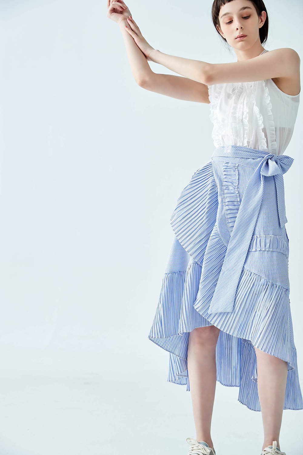 特殊的穿著設計,可以自己調節腰圍,裙擺就像浪花一樣令人驚艷,但臀圍若較大則需需慎選。