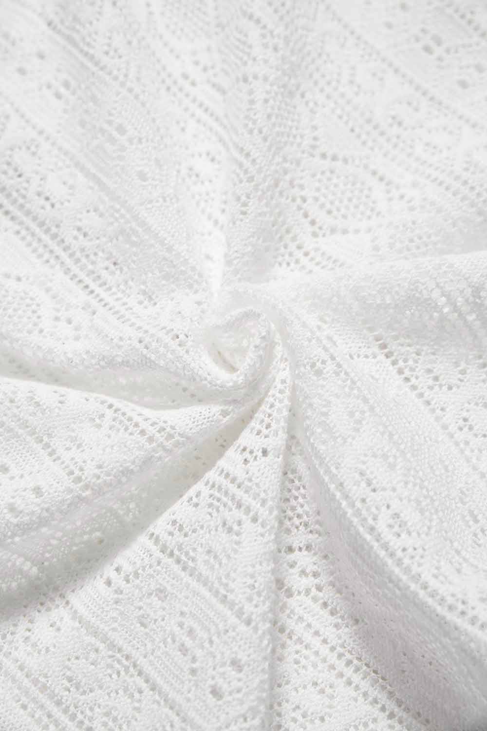 晝光初放翻領蕾絲花紋七分袖上衣 - 無瑕純白, S
