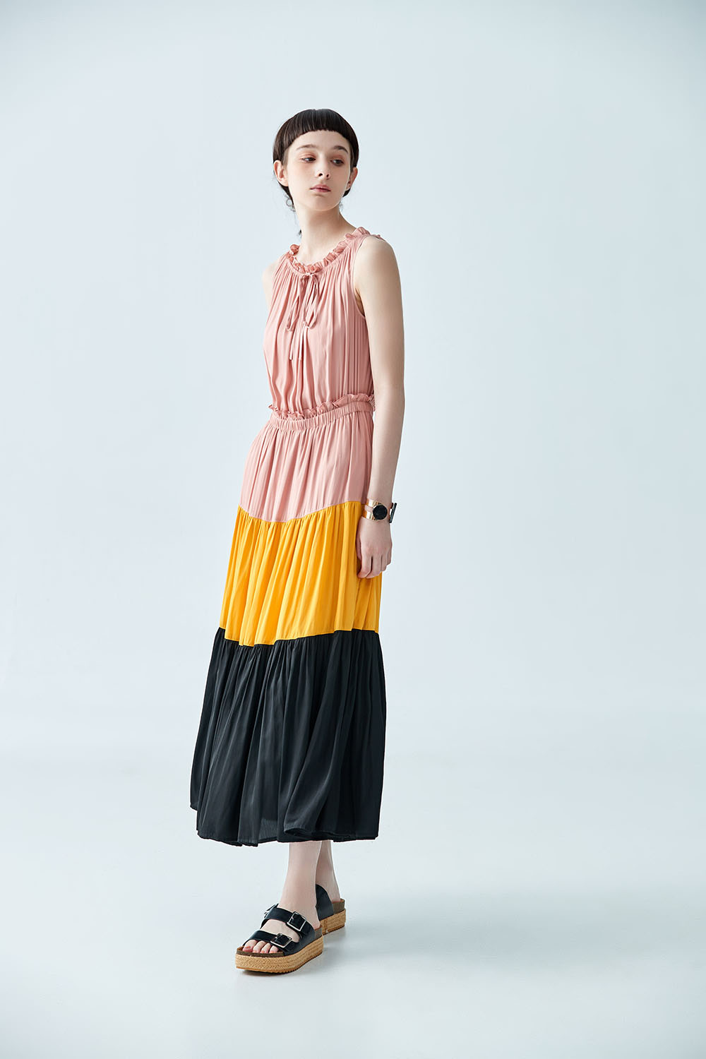◈採用背心款式更符合夏天,領口上則捲曲著柔軟,使妳在其中感受著花瓣賦予的灑落吹拂,腰上的細褶串連出整身的皺摺感,貫穿妳的人生,帶往一場質感歷程。