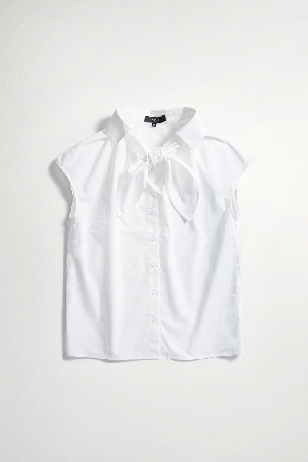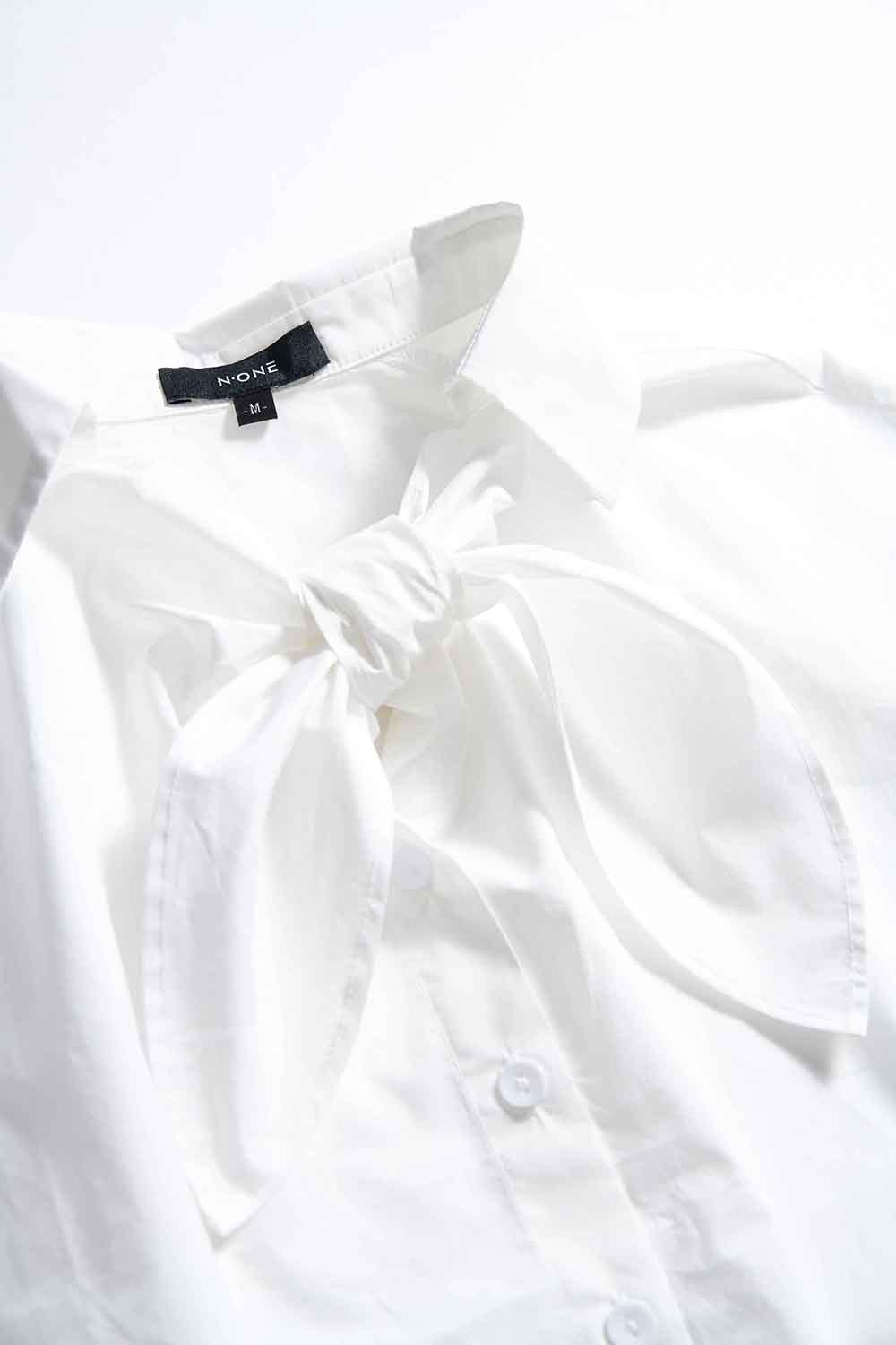 輕暖光影領口綁結領片連袖上衣 - 無瑕純白, S
