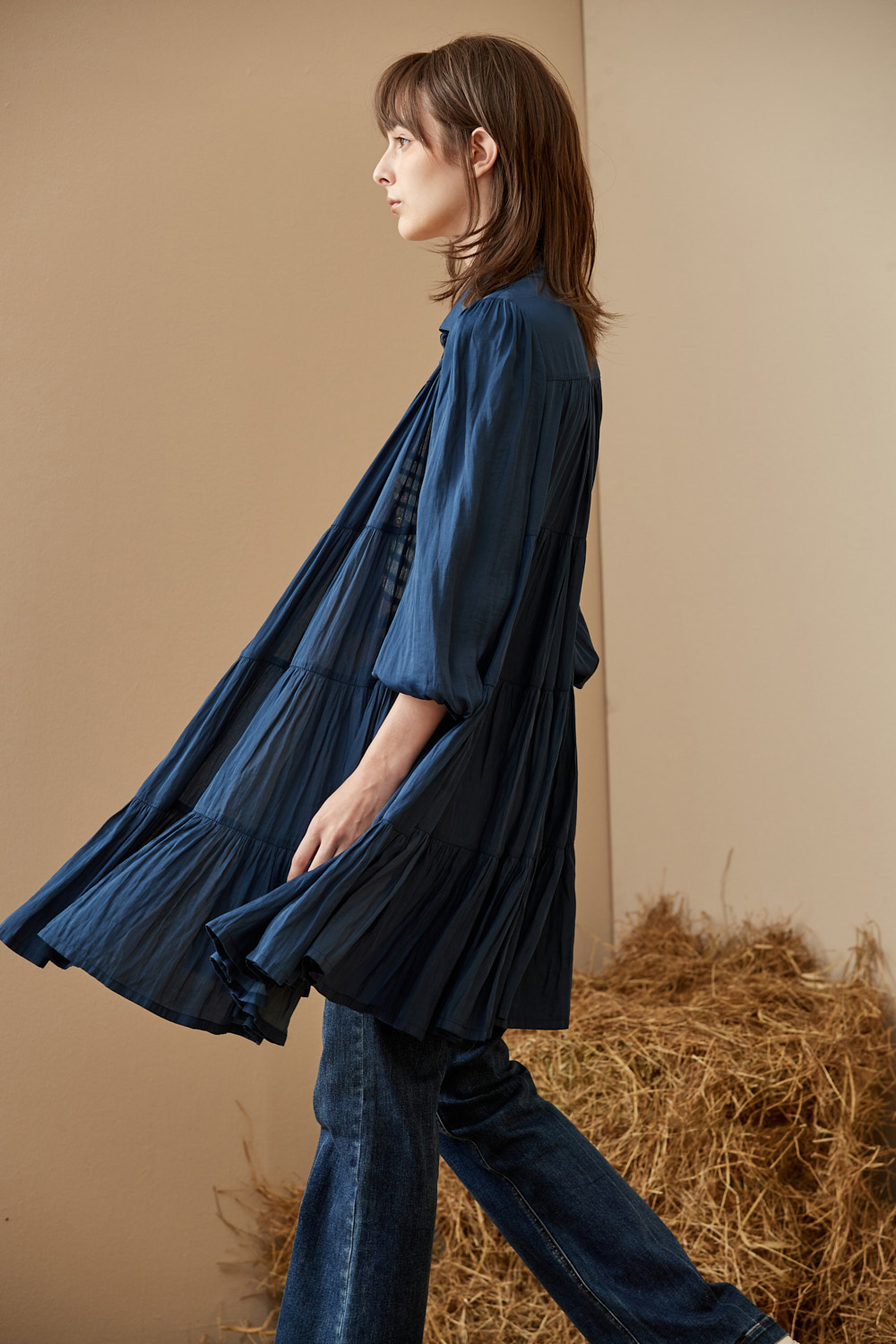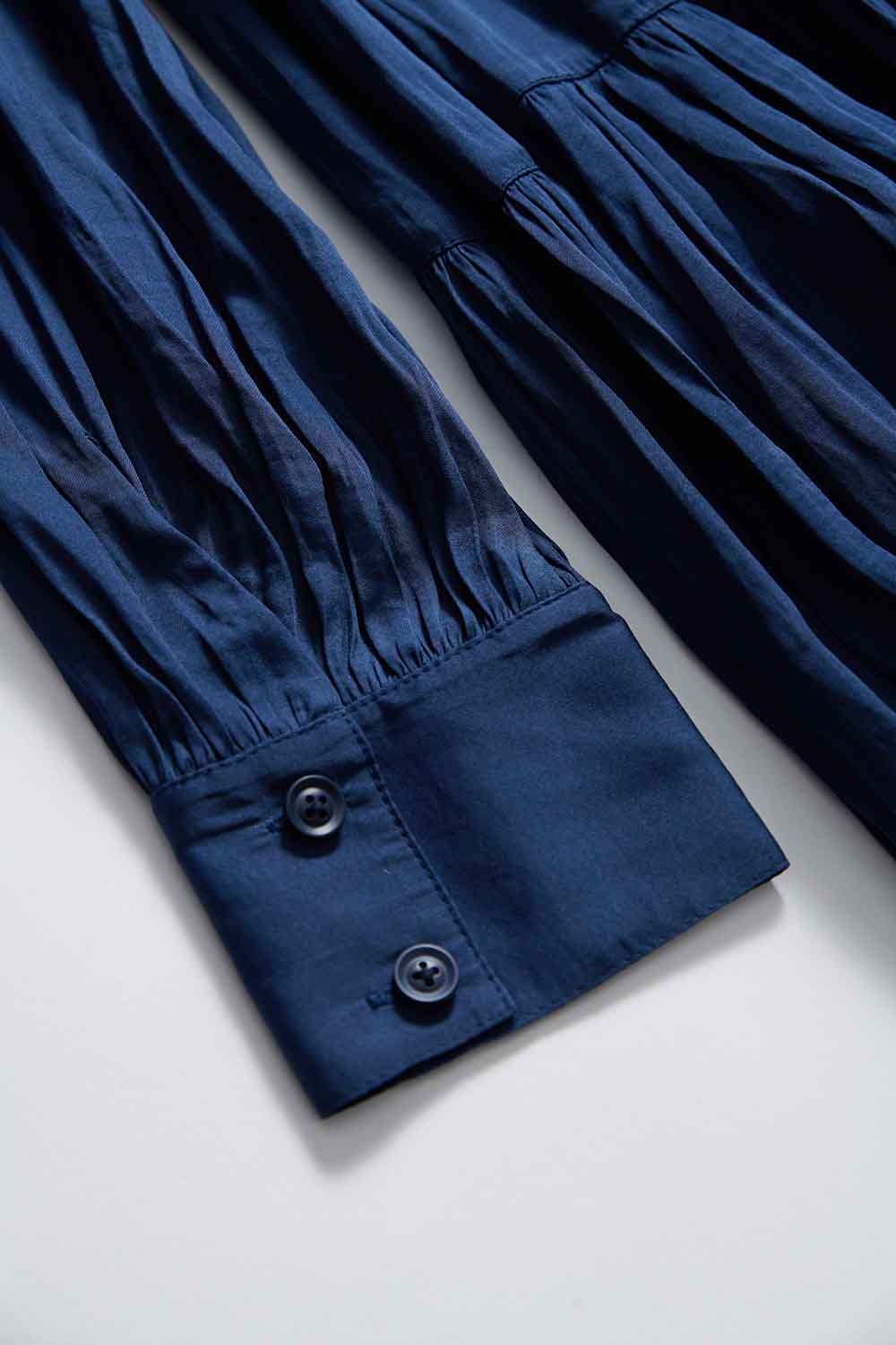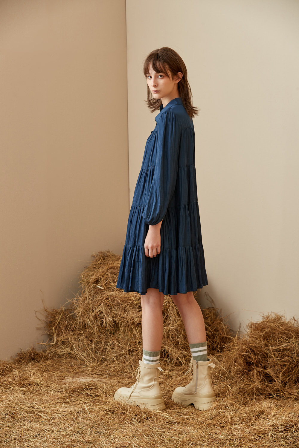 ◈如夜空般自帶神秘的藏藍色是符合秋季的協調色彩,能深深地將妳的身影烙印在眾人眼波,揉合著無重量的飄柔質感平衡一身的深沉之色,衣著上摺出一道道細褶呈現出層次裡的療癒視覺感受,讓妳的每個動作下都不只是單調的平面感,而是在細褶的深深淺淺裡堆疊出跌宕的故事,使妳始終是個充滿內涵的女人。