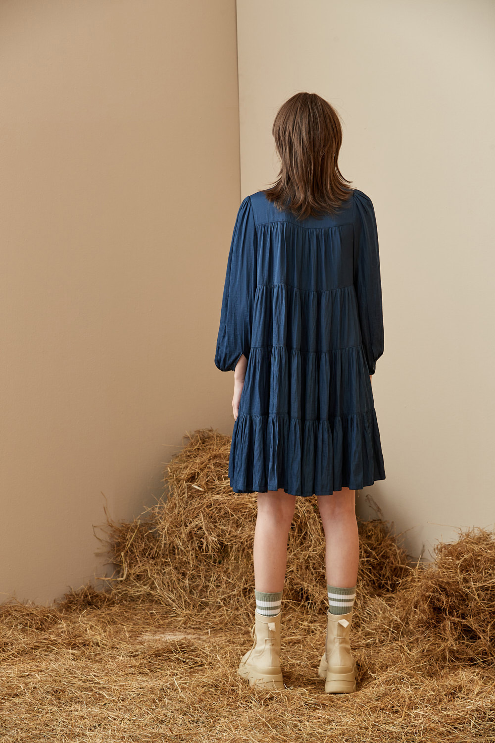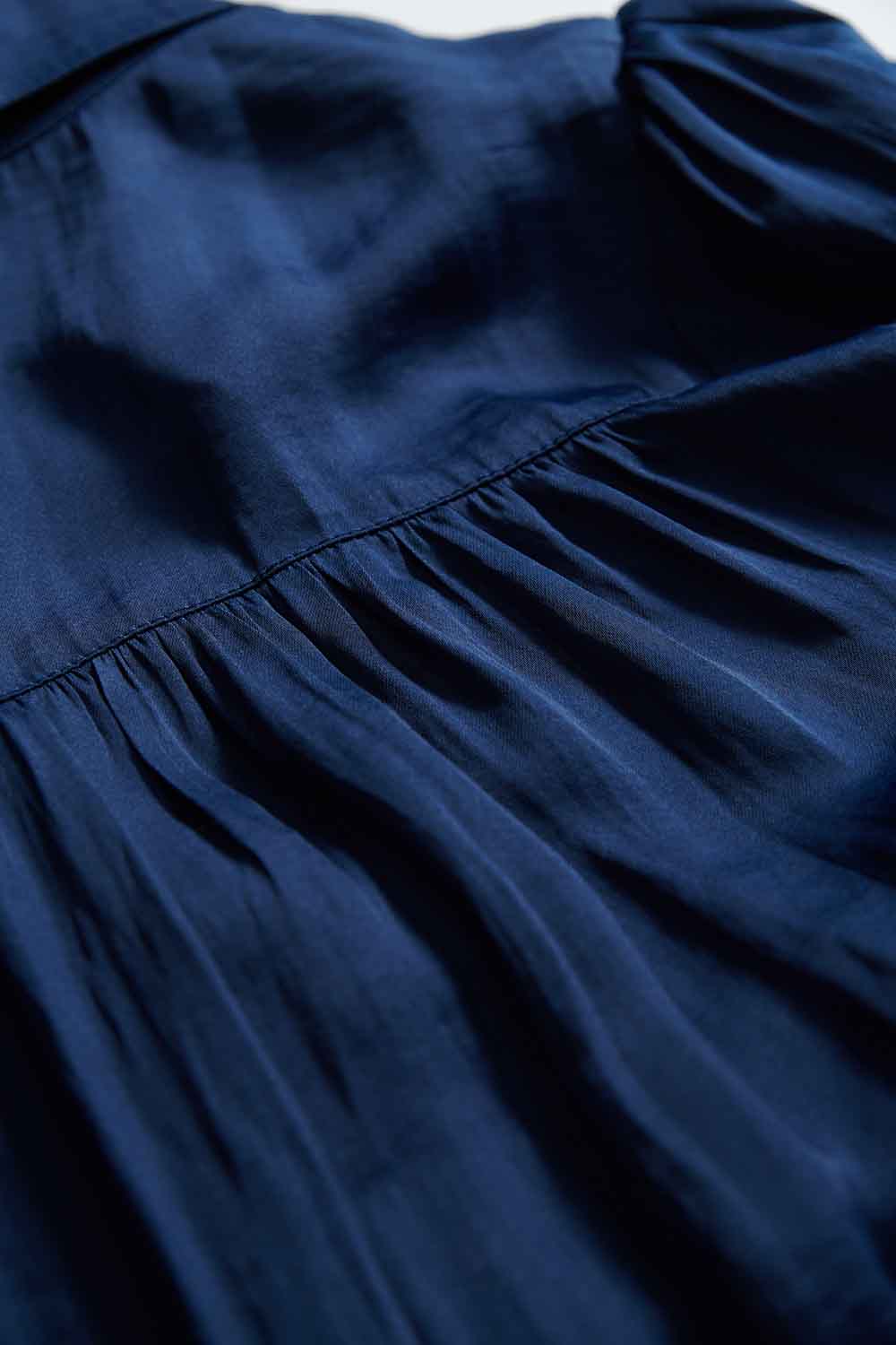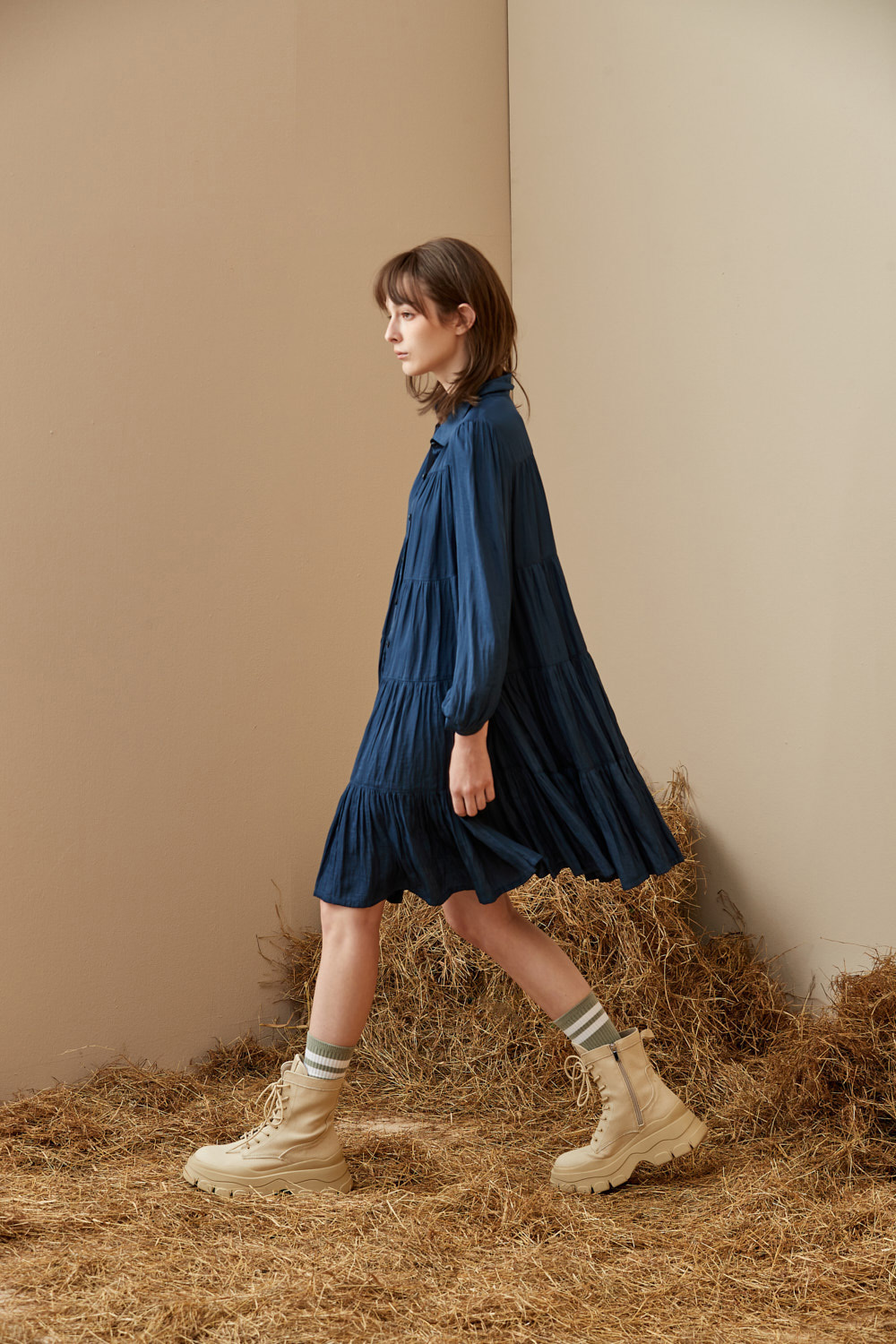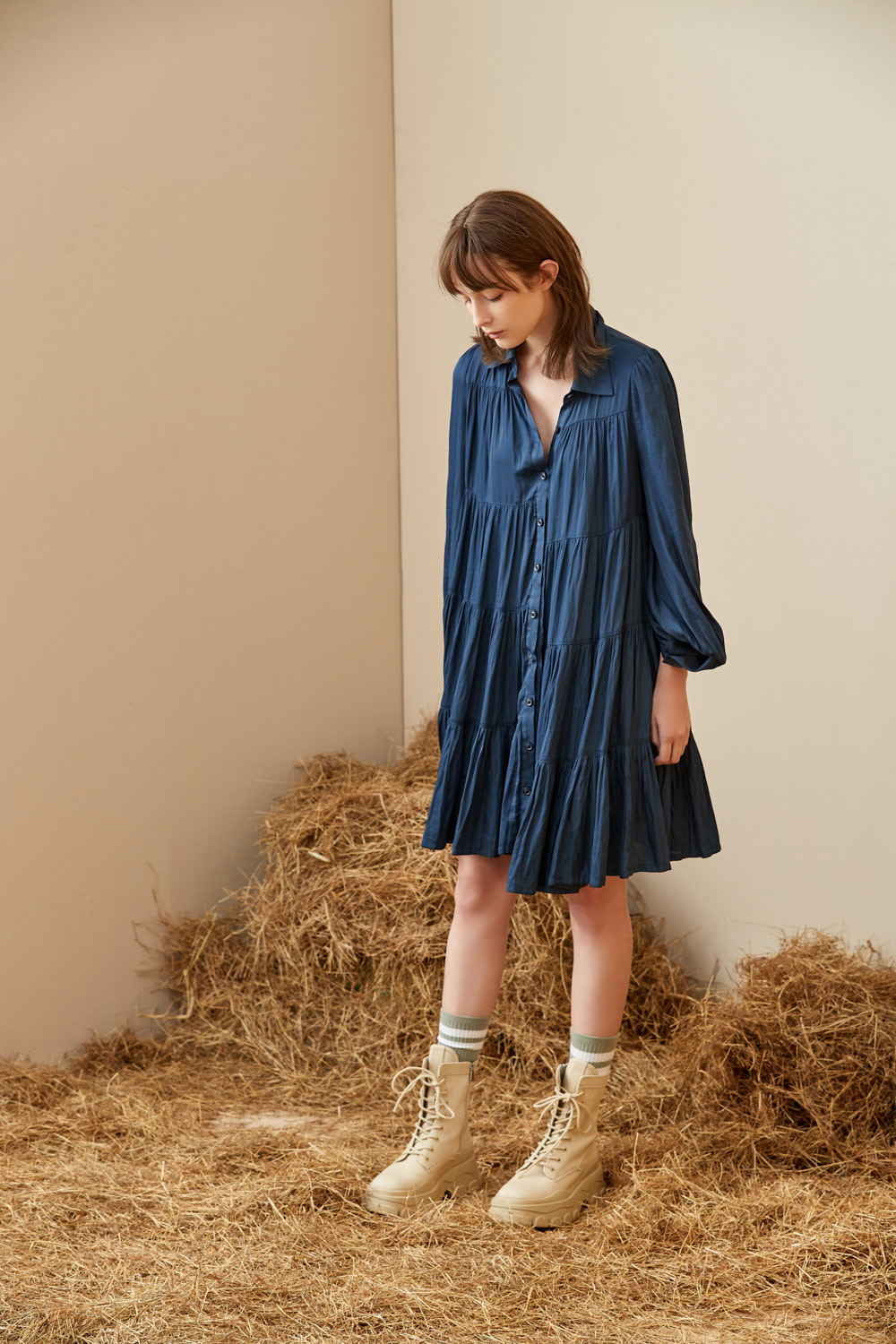 ◈如夜空般自帶神秘的藏藍色是符合秋季的協調色彩,能深深地將妳的身影烙印在眾人眼波,揉合著無重量的飄柔質感平衡一身的深沉之色,衣著上摺出一道道細褶呈現出層次裡的療癒視覺感受,讓妳的每個動作下都不只是單調的平面感,而是在細褶的深深淺淺裡堆疊出跌宕的故事,使妳始終是個充滿內涵的女人。