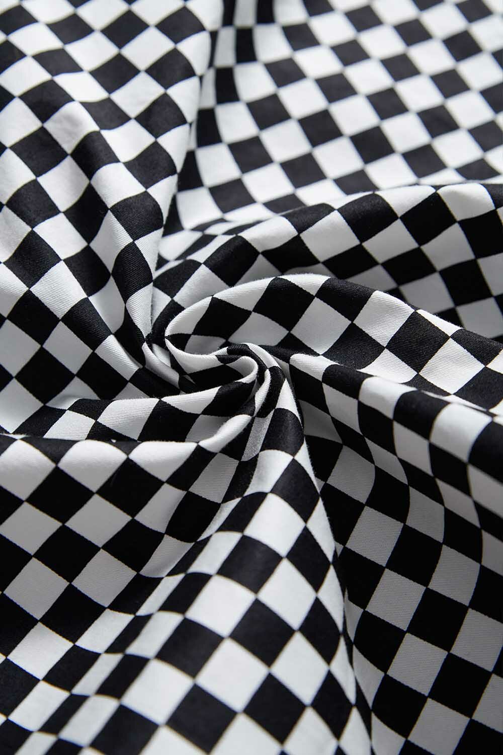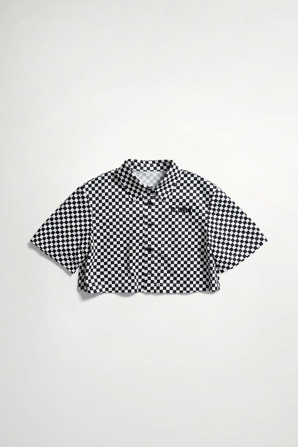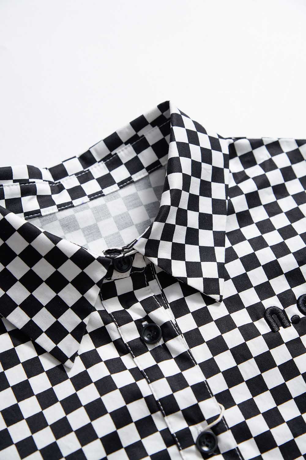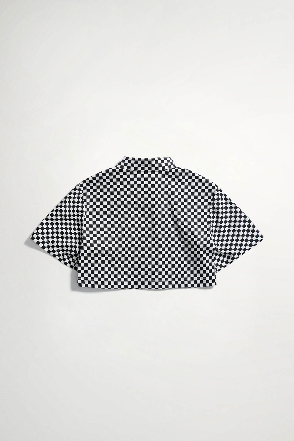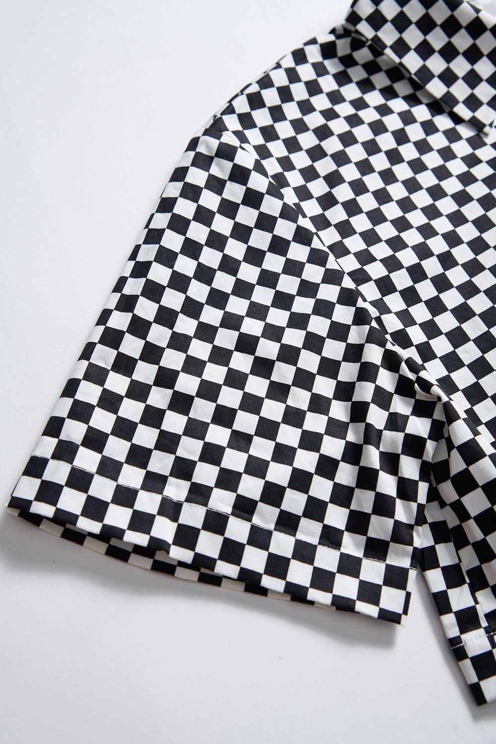 率感典藏棋盤格翻領短版上衣 - 神祕純黑, S