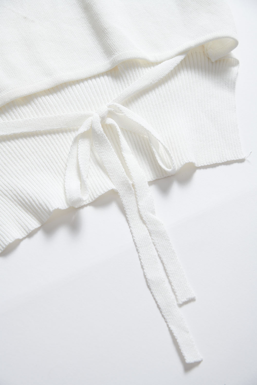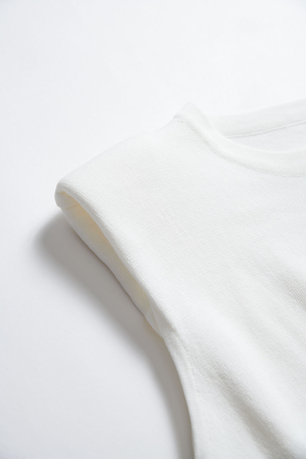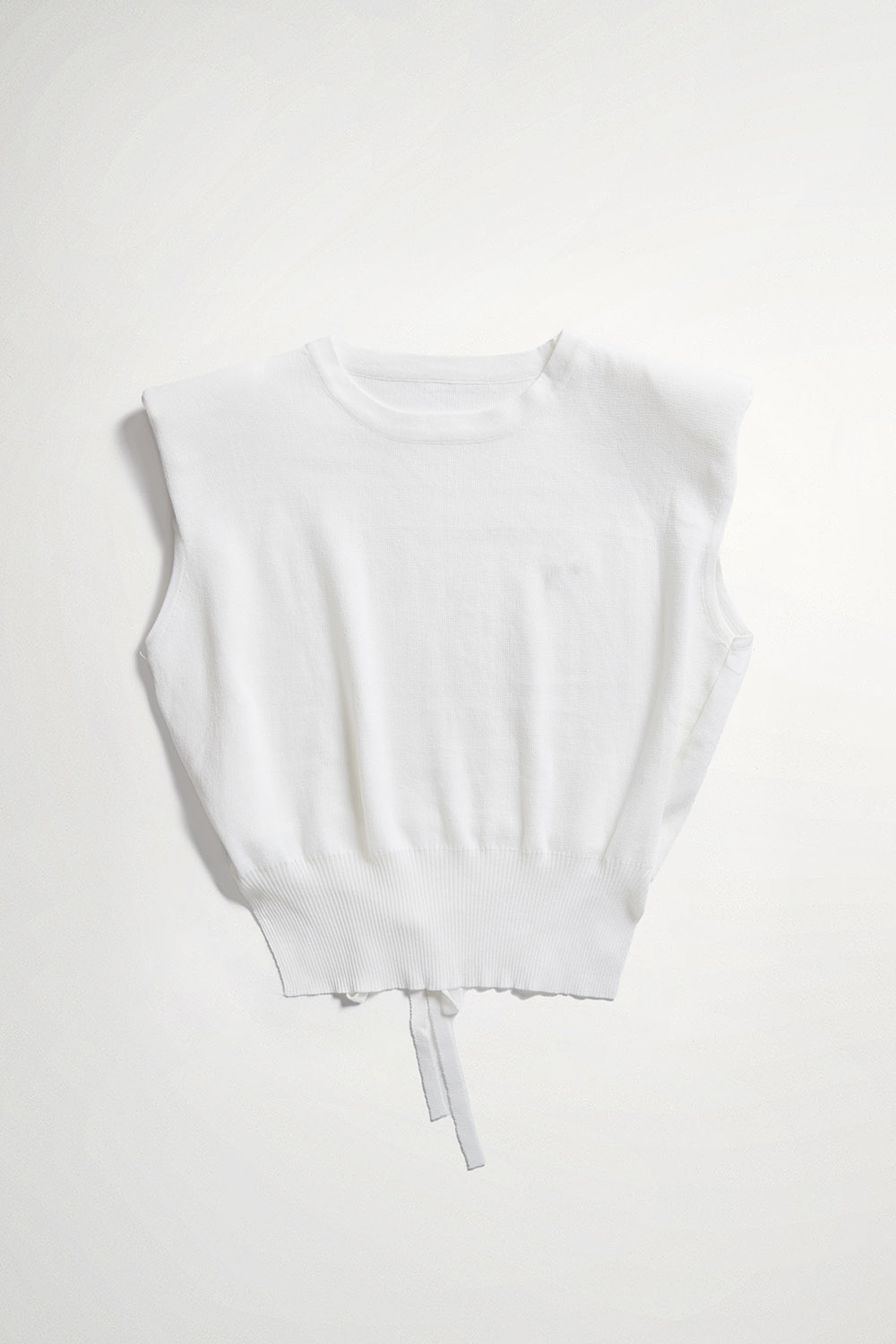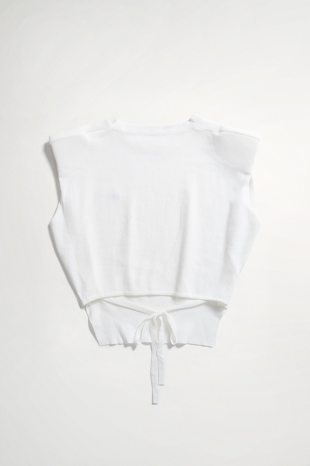 撫心織柔後綁帶墊肩造型短版背心 - 無瑕純白, F