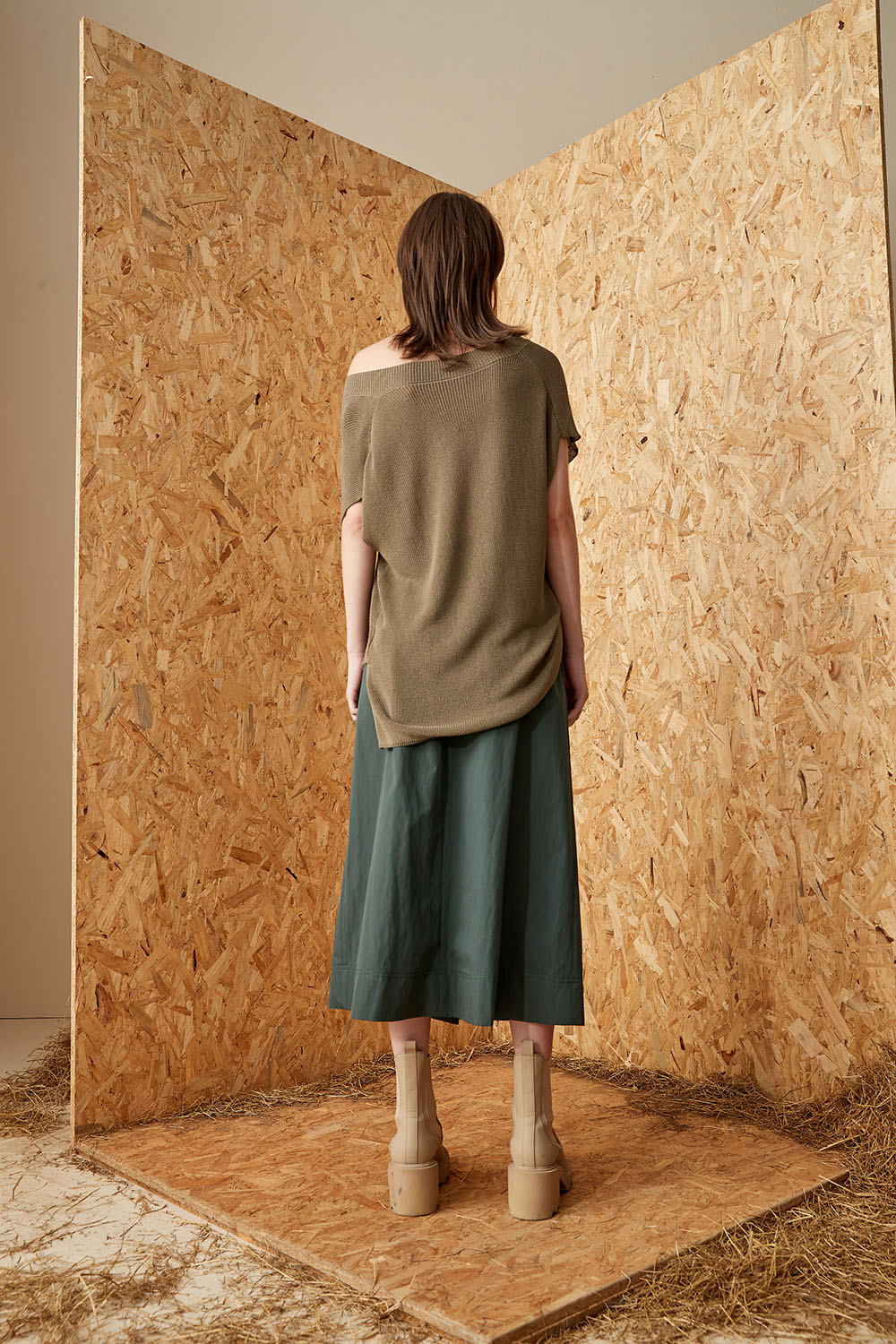 悠褐共處V領寬袖針織上衣 - 蒼翠欲滴, F
