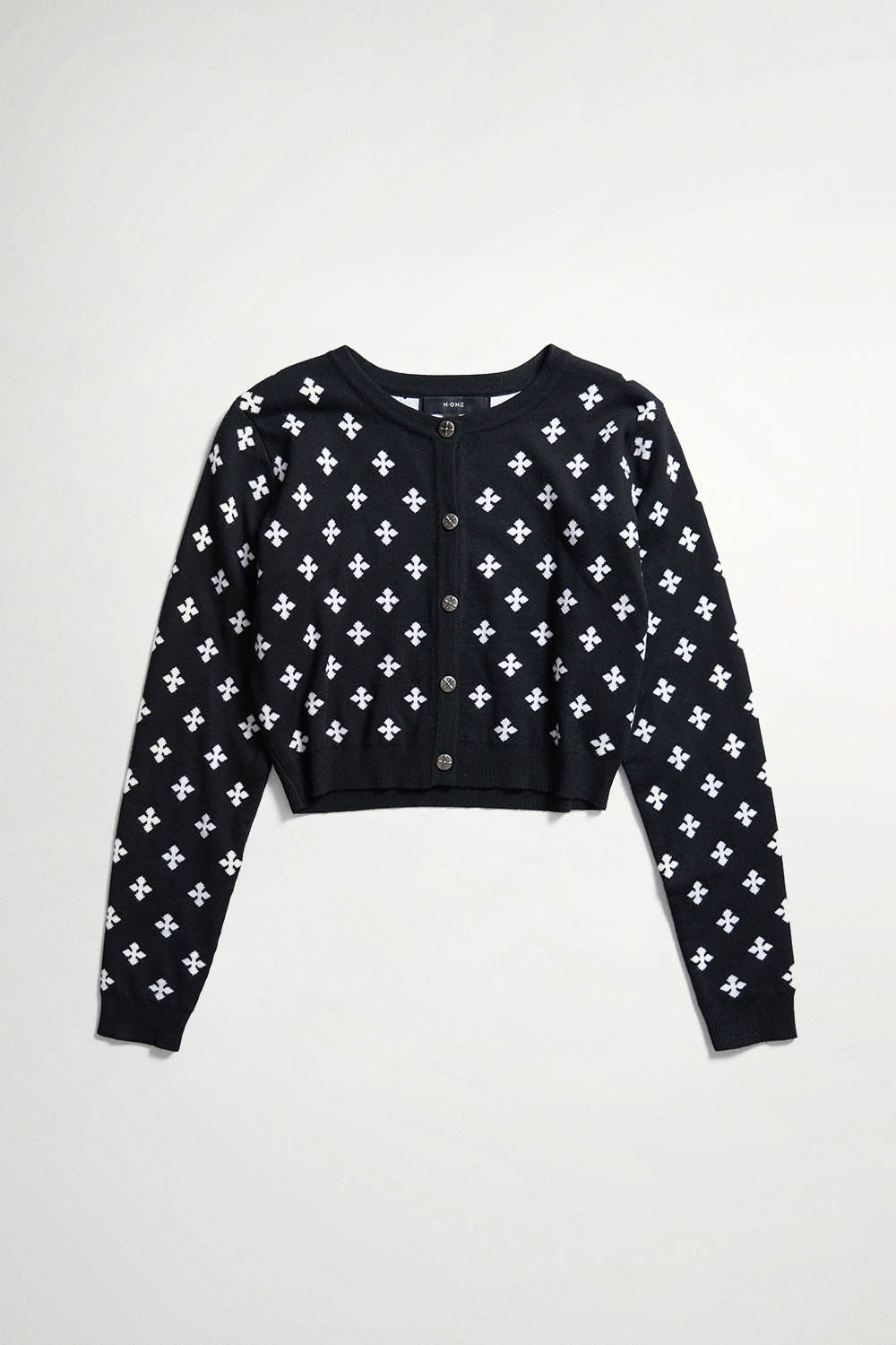 星點墜蘊雙面織花排釦針織短版外套 - 神祕純黑, M