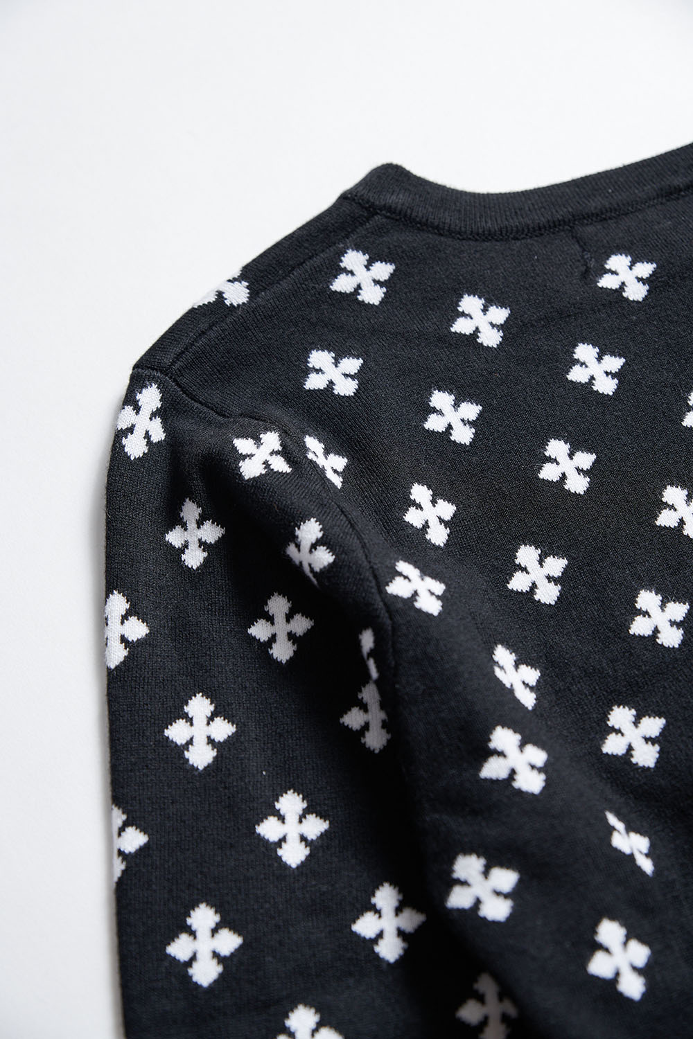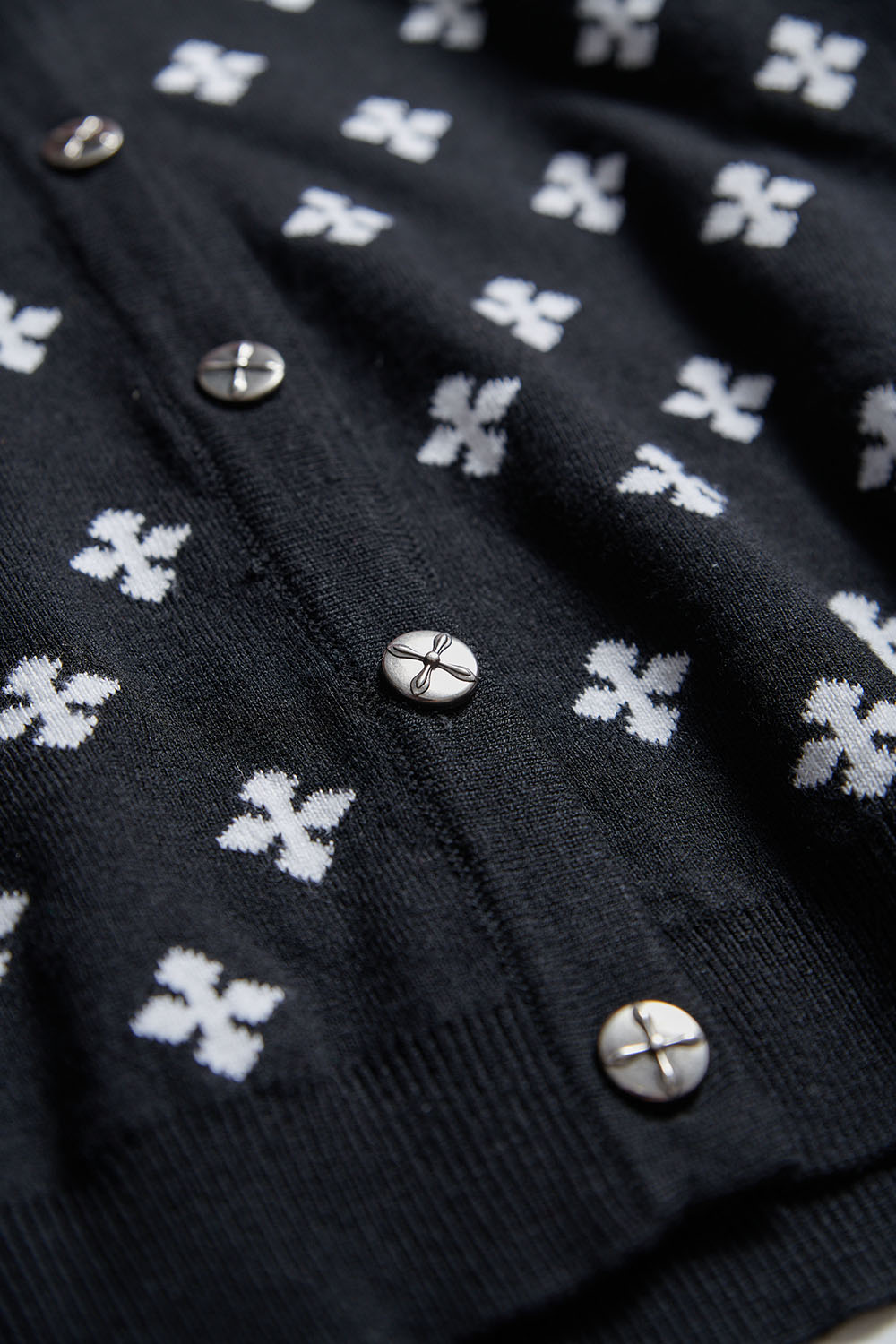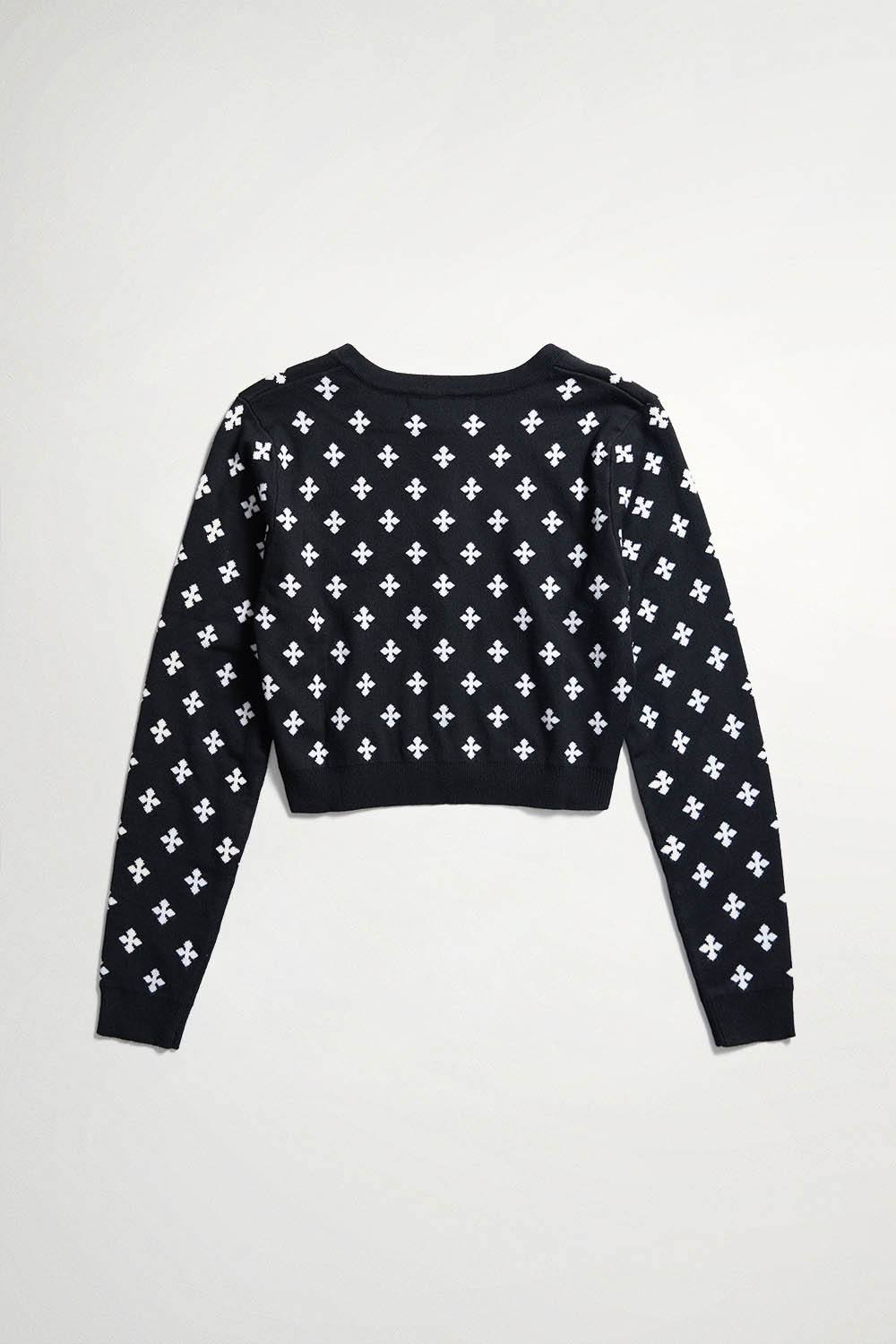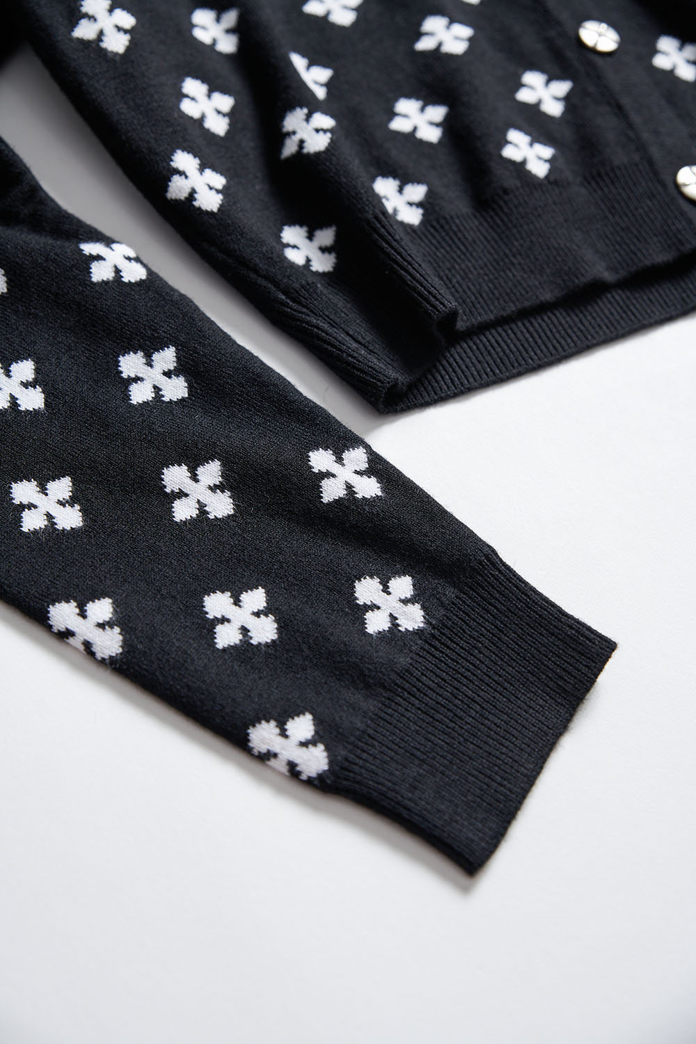 星點墜蘊雙面織花排釦針織短版外套 - 神祕純黑, S