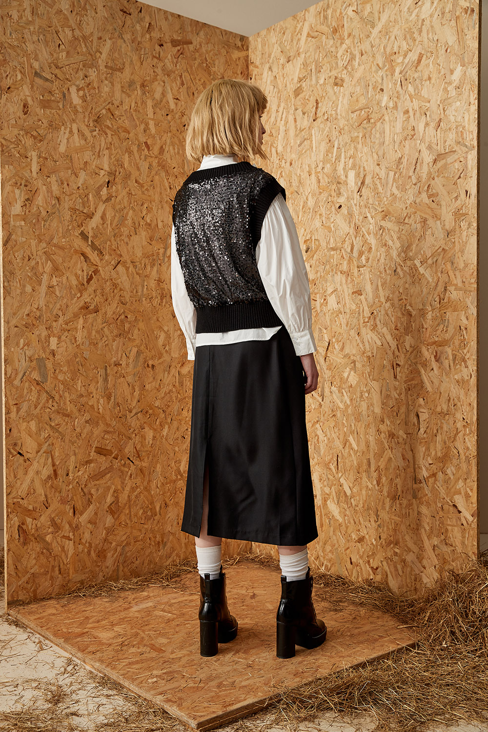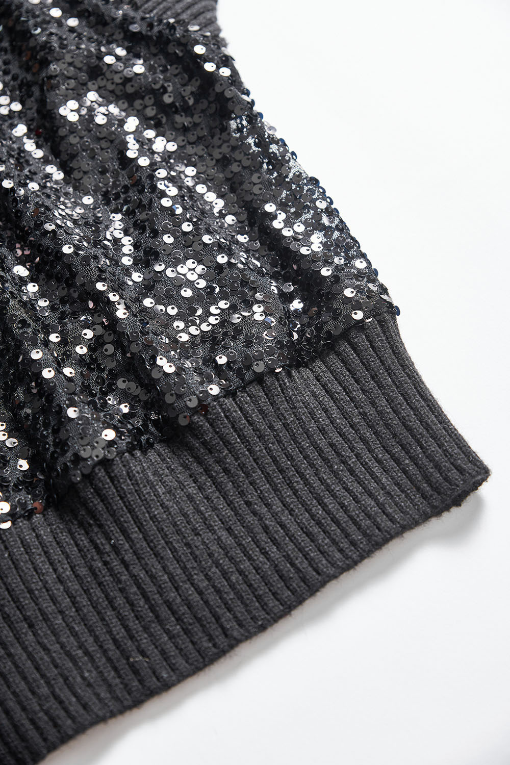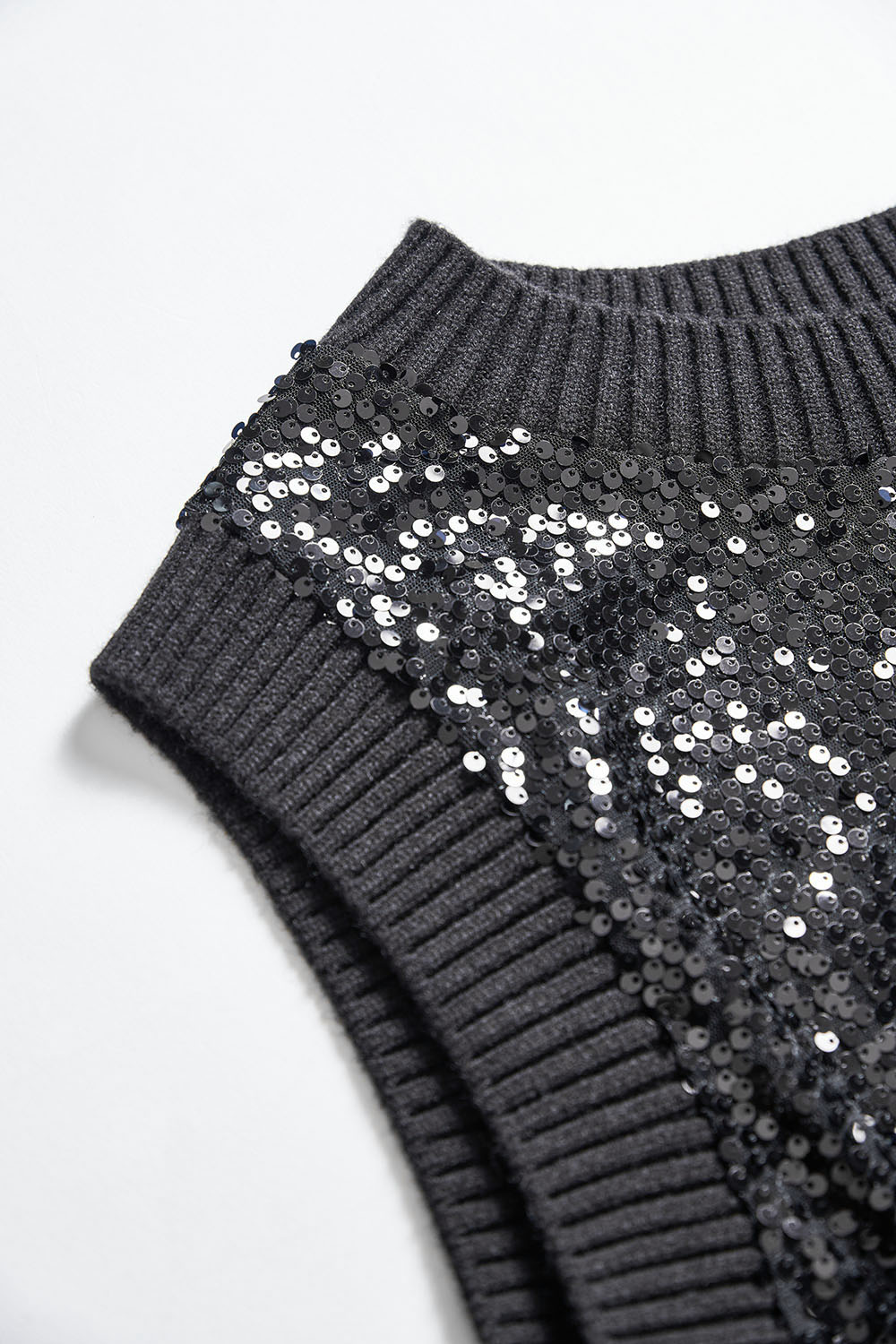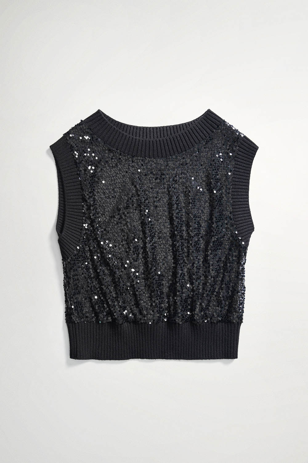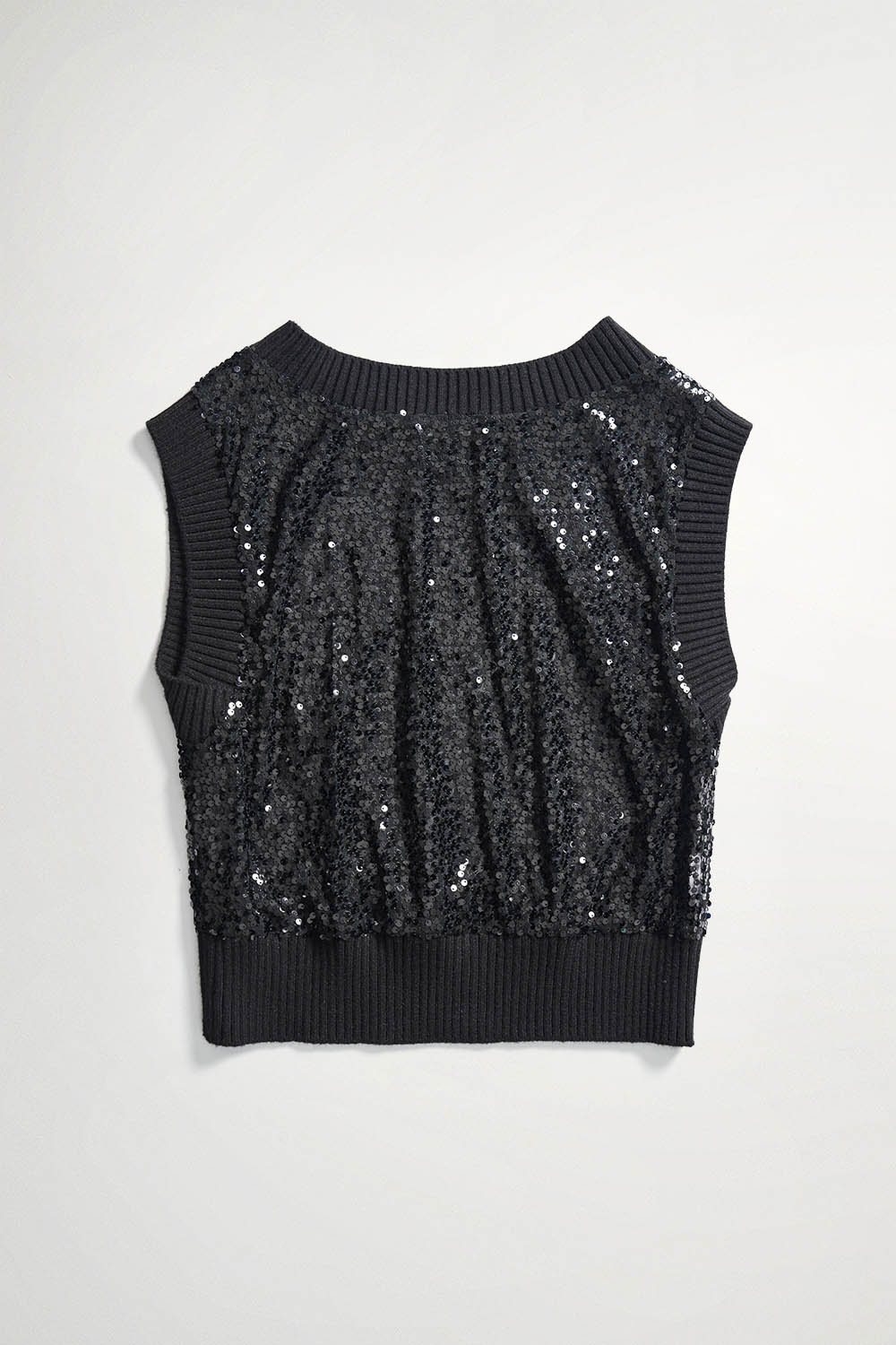 隱光質映針織拼接亮片落肩寬版背心 - 神祕純黑, S