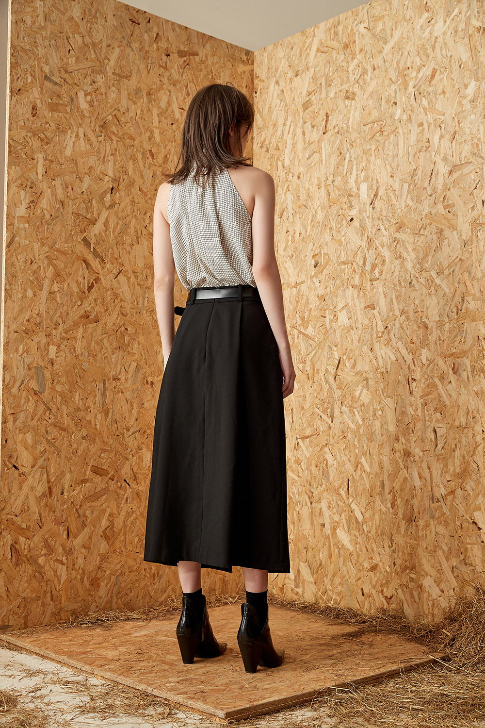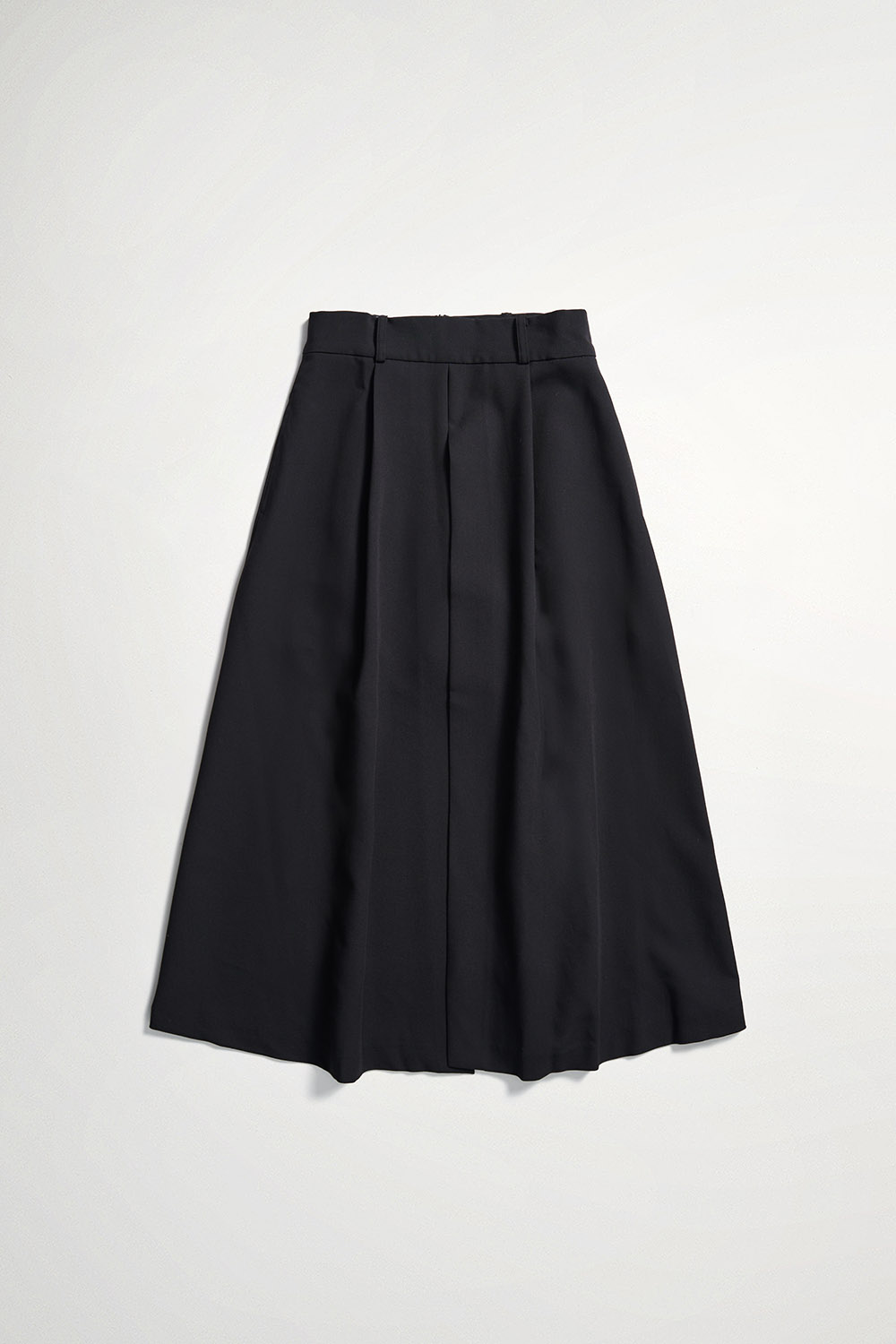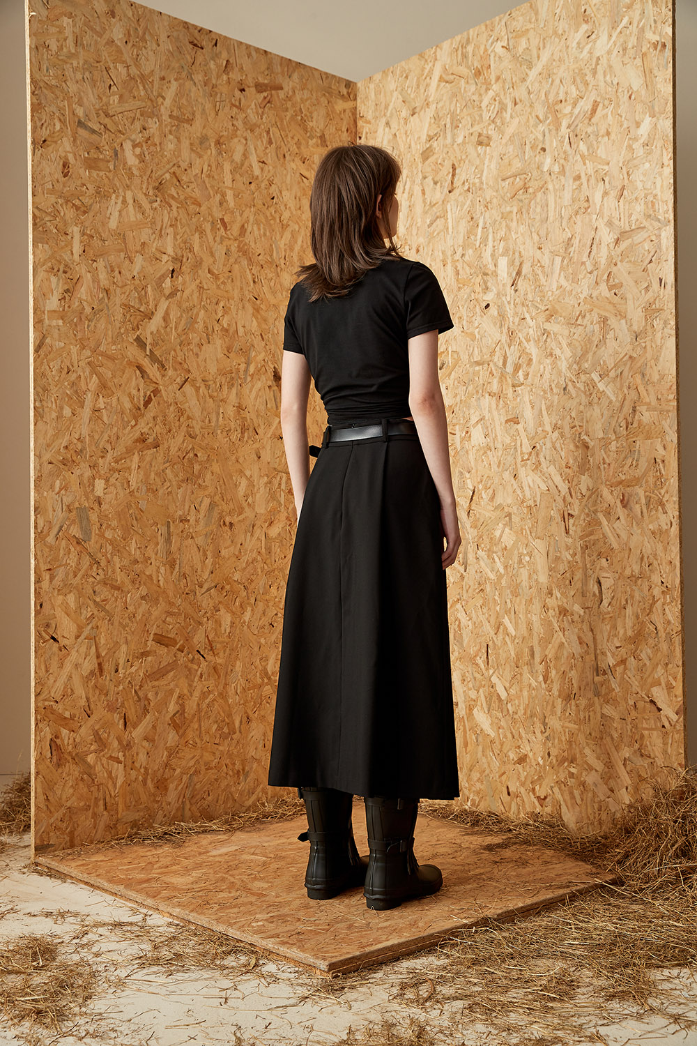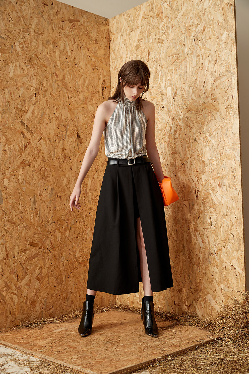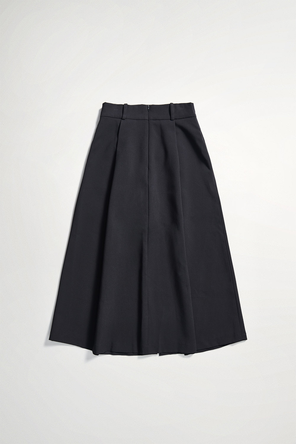 凝聚秋序前開衩打褶A字長裙 - 神祕純黑, L