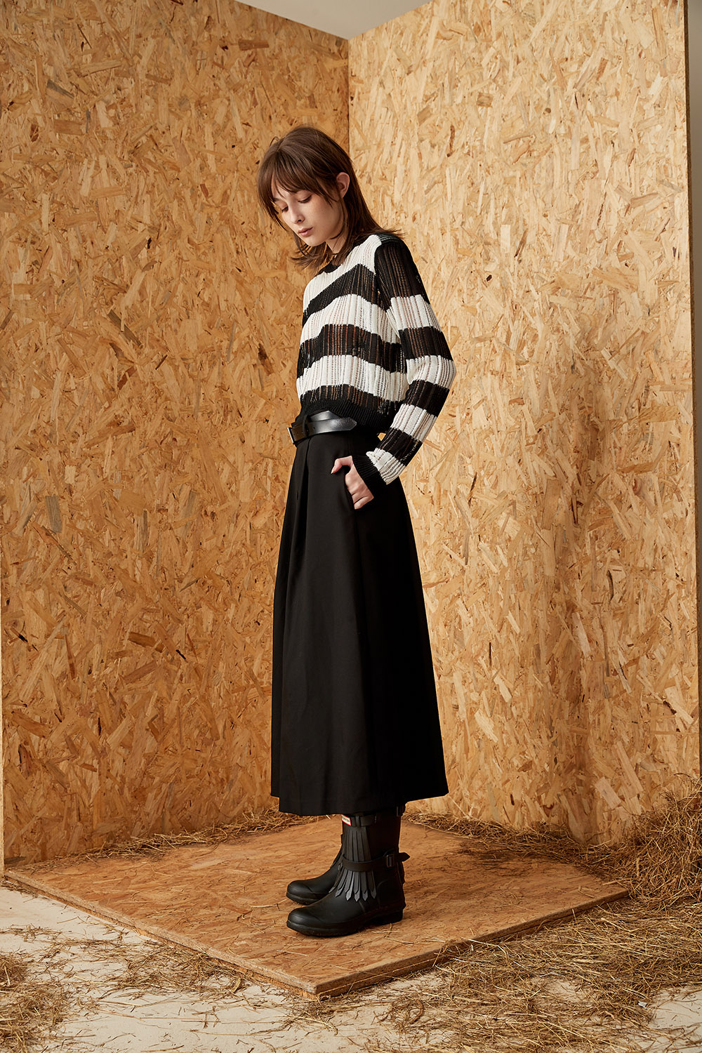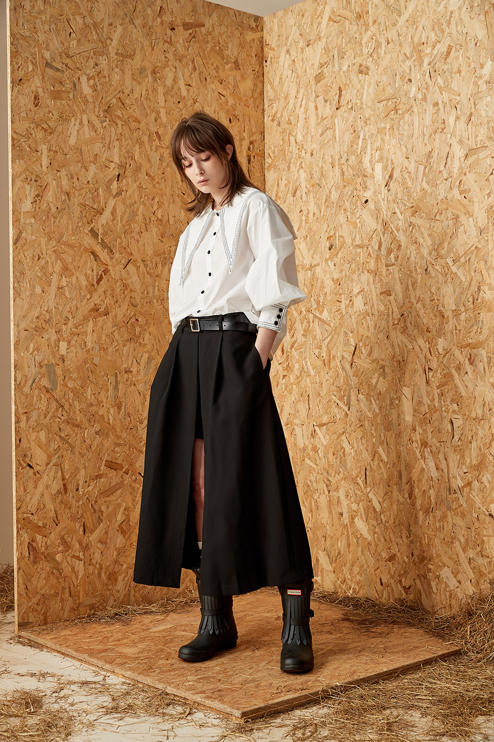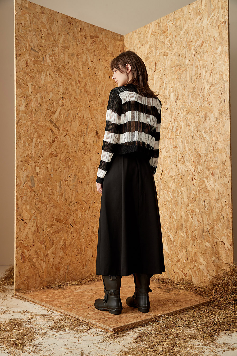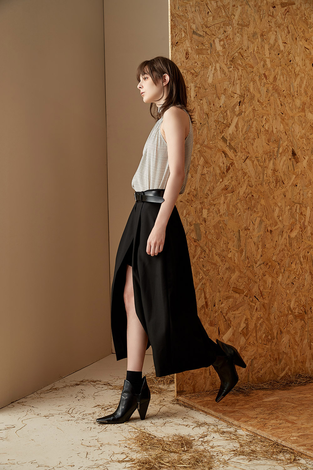 凝聚秋序前開衩打褶A字長裙 - 神祕純黑, L