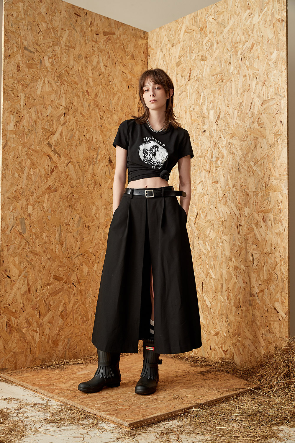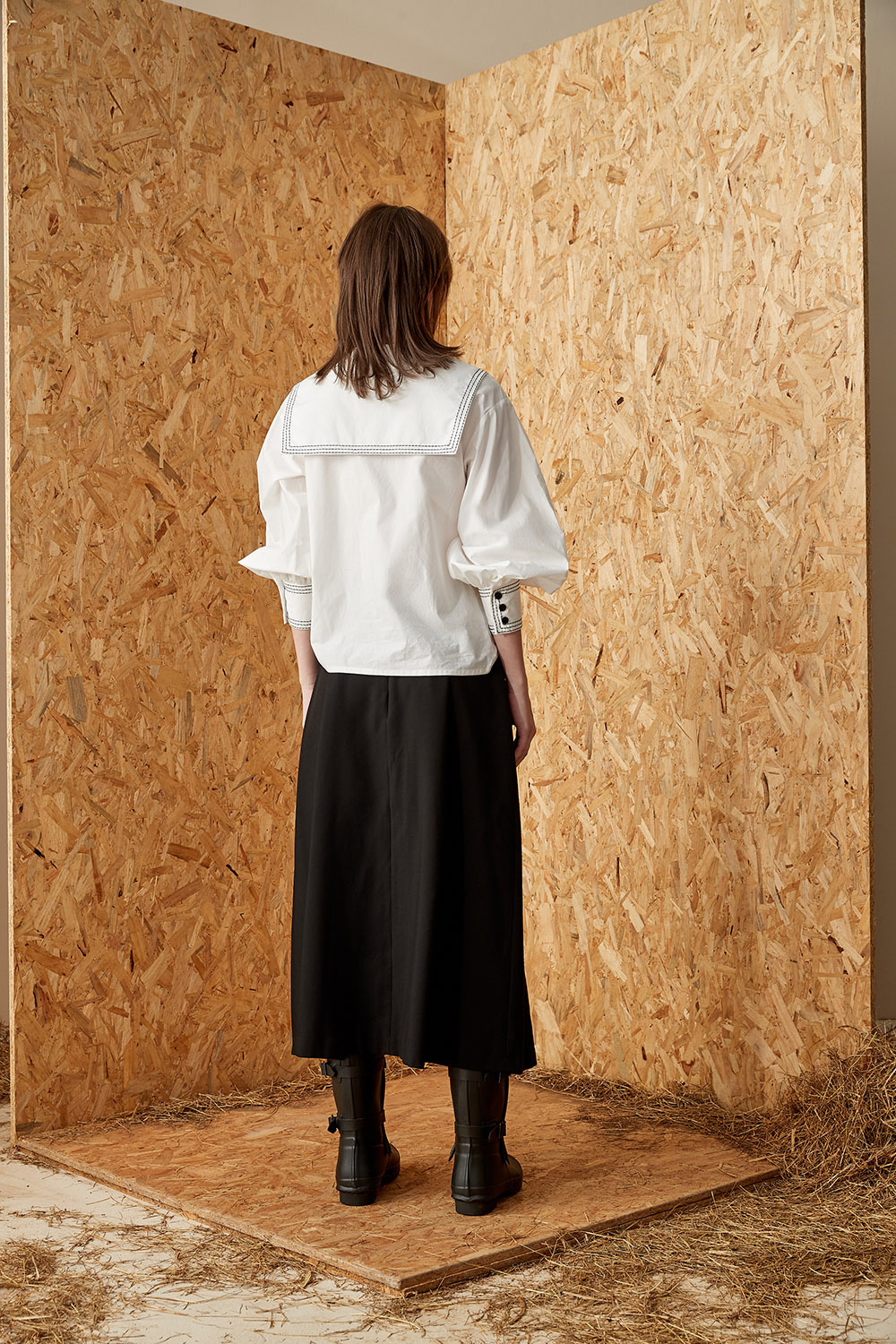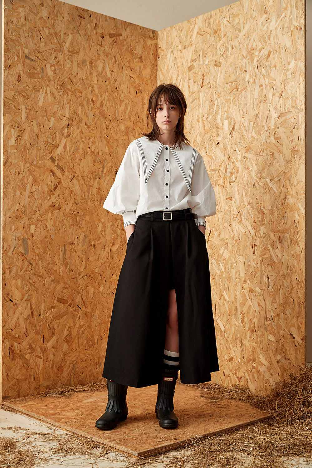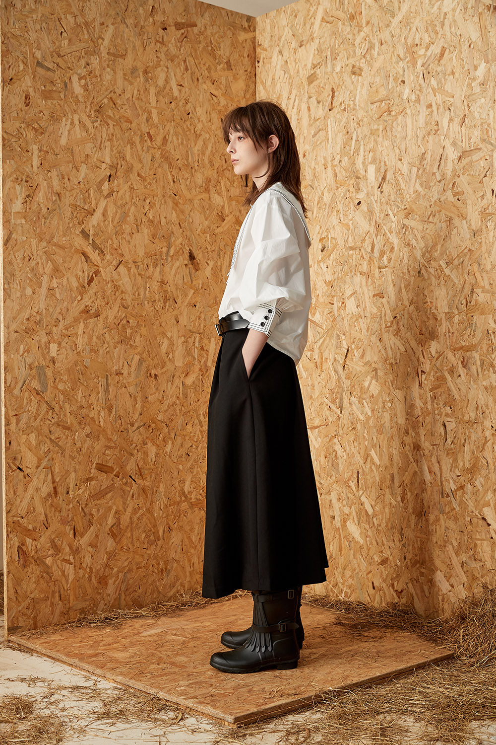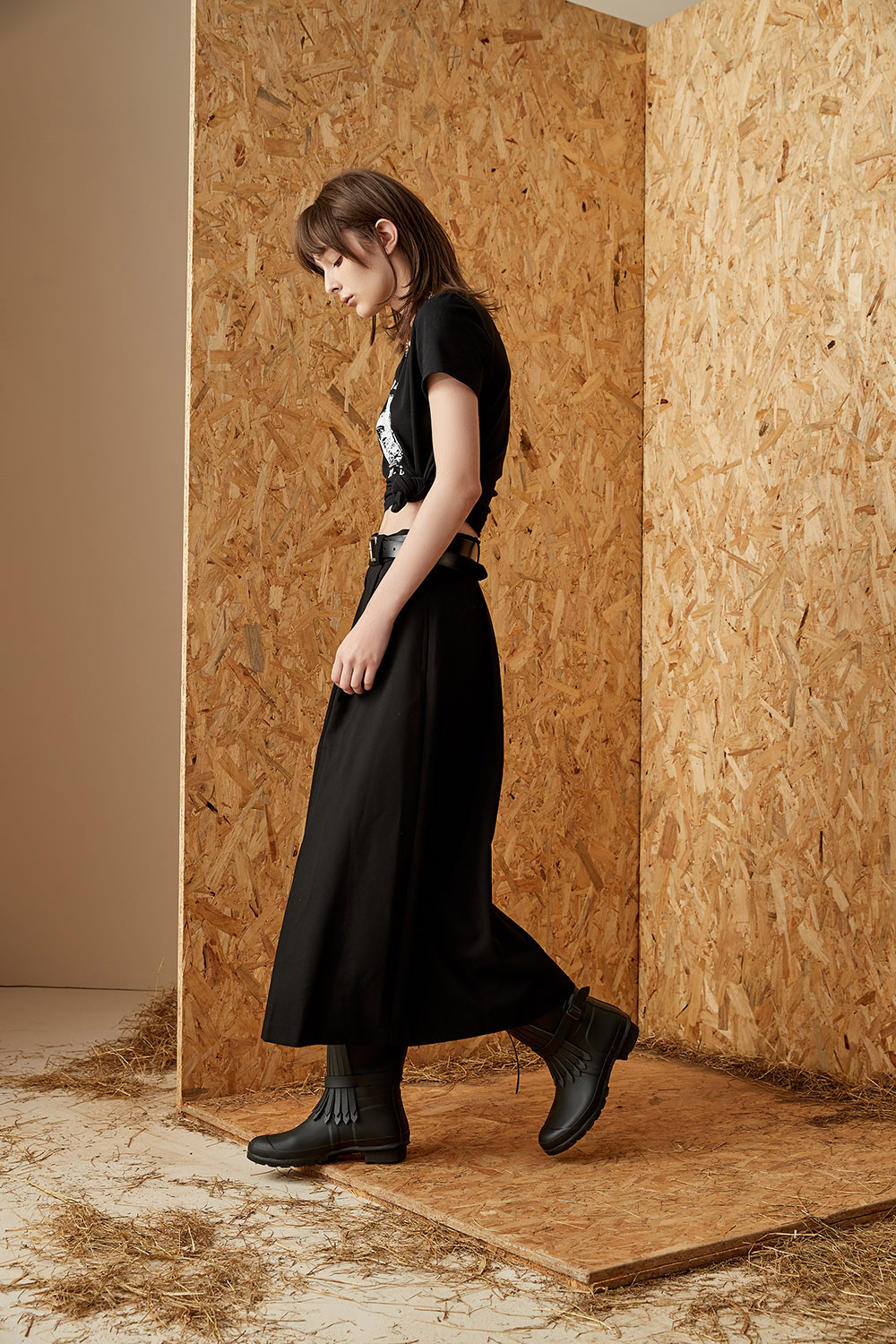 凝聚秋序前開衩打褶A字長裙 - 神祕純黑, L