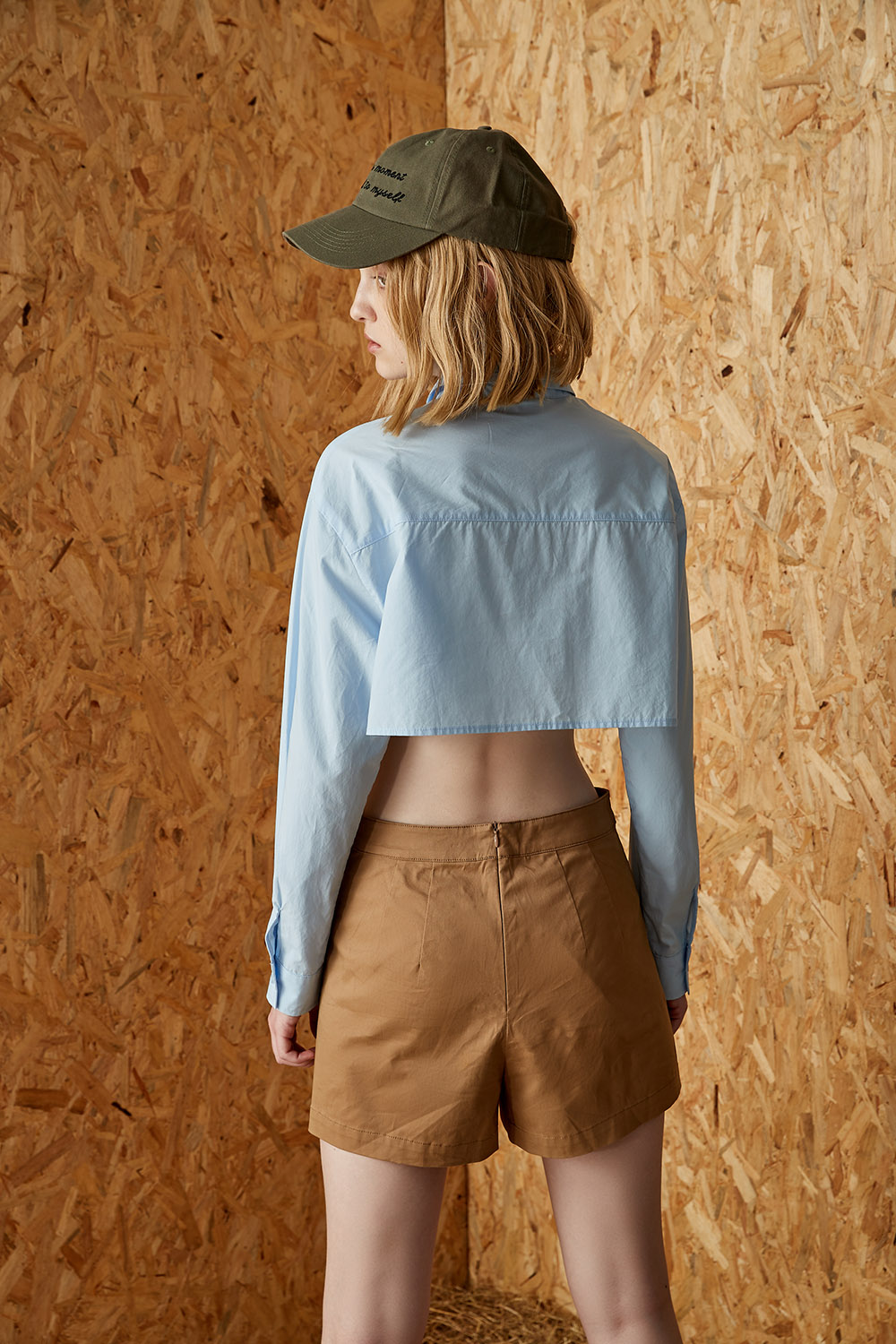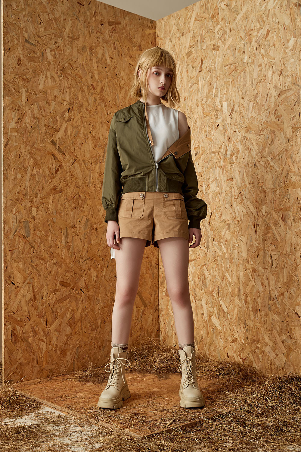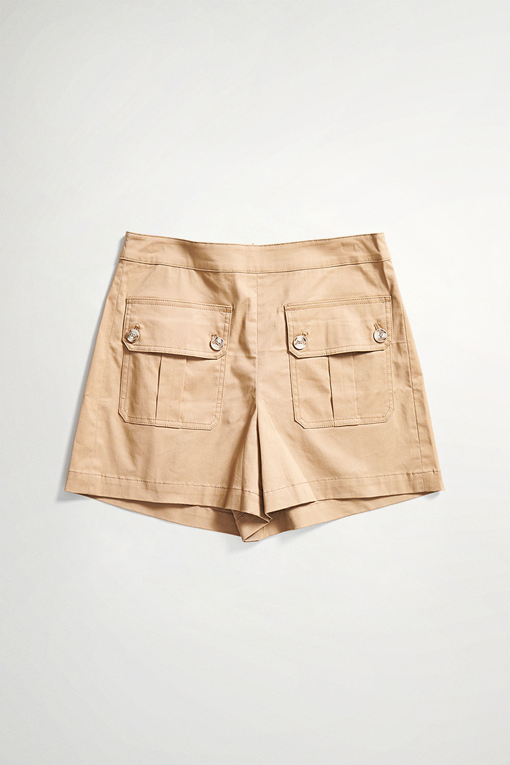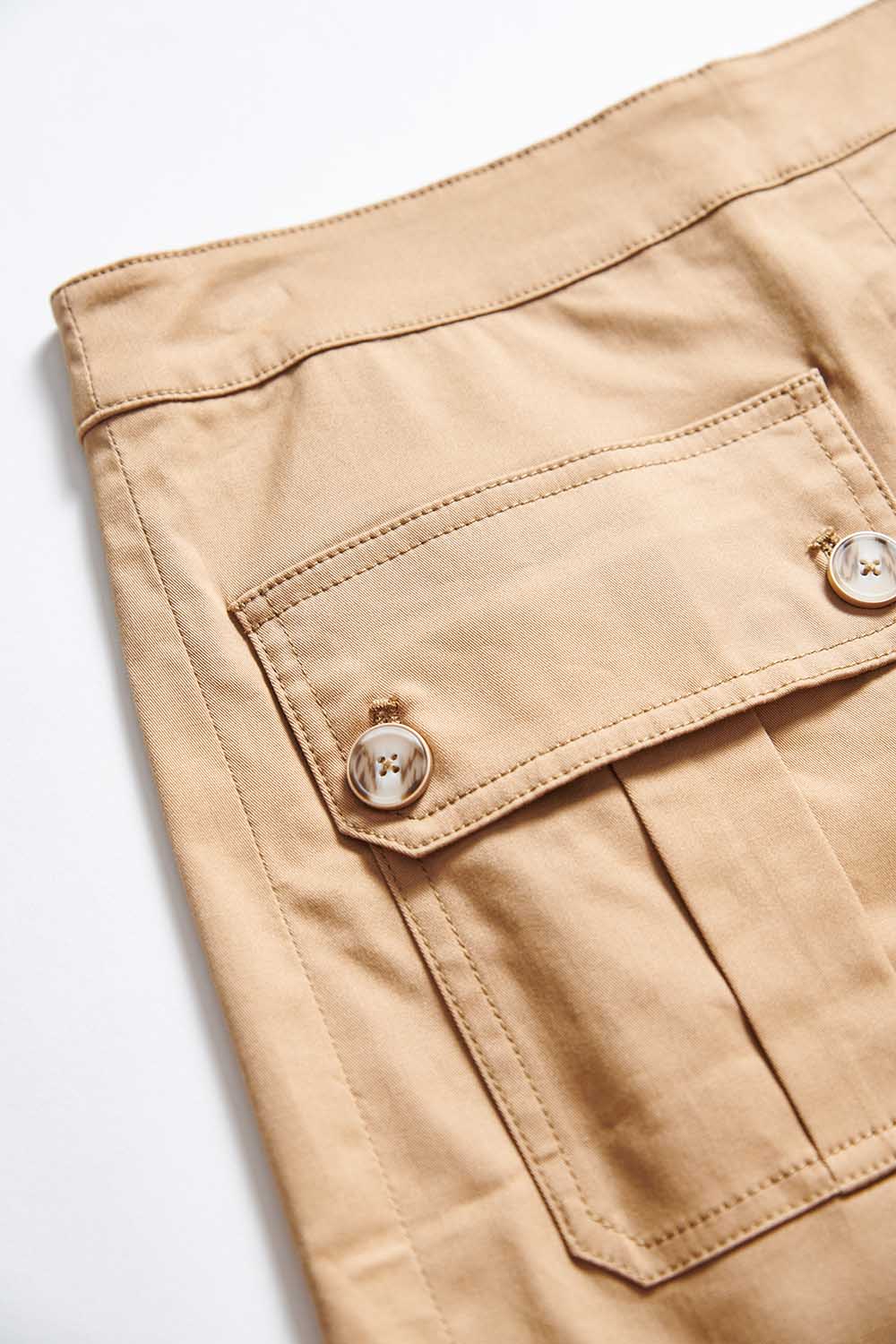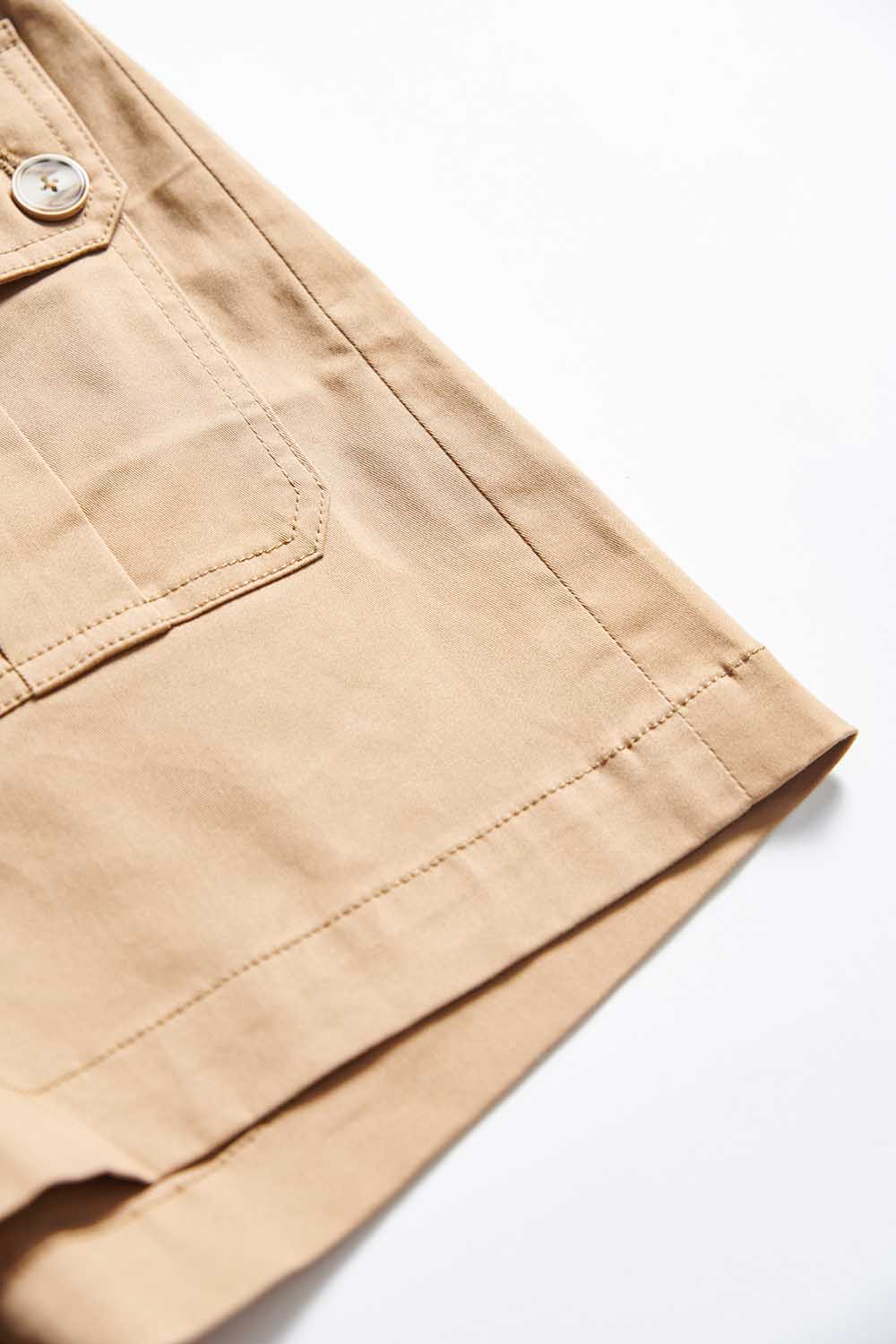日常暮裡口袋造型高腰棉質短褲 - 可可卡其, L